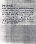 În materie de metal, Grecia nu-i are doar pe NIGHTFALL! Mă susţine trio-ul speed atenian DESPISE, activând încă din '86 din '89 în formula: Maria (bas), Makis (voce & ch., lider de la înfiinţare) şi Johnny (tobe). Demo-ul ''State Of Brutality" (1993) face, prin cele 4 piese, demonstraţia unei compactităţi şi vigori deosebite, dar personal aş fi preferat o notă specifică în plus, nu neapărat înrădăcinată în traditiile muzicale greceşti (cei care mai cântă astăzi thrash cu accente power s-au îndepărtat deja de filonul original, de standard). Introducerile primei şi ultimei piese ('State Of Brutality' şi 'Flower Of Death'), complementare motivic, oferă speranţe în acest sens. LP-ul (cu şanse să apară în acest an) pare deja, promiţător. Până la lansare, puteţi cere caseta trimiţând 6$ pe adresa: ...